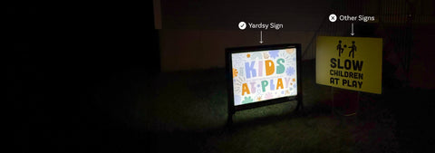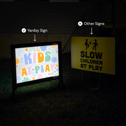 Your Yardsy Sign Starter Kit includes a durable, solar-powered frame (a one-time purchase) and two interchangeable inserts. - Refresh Anytime